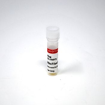 MitoView™ dyes are fluorogenic mitochondrial stains for live cells. The dyes rapidly accumulate in mitochondria and can be imaged without washing. They are available with blue, green, far-red, and near-infrared fluorescence. MitoView™ 633 is a far-red fluorescent mitochondrial dye with absorbance/emission at 622/648 nm. The dye is membrane permeable and becomes brightly fluorescent upon accumulation in the mitochondrial membrane. Staining is dependent on mitochondrial membrane potential, and can be used to monitor mitochondrial membrane potential in intact cells. The dye is designed for use in live cells, and is not fixable. Note: The optimal detection settings for MitoView™ 633 are the same as for Cy®5 and other far-red dyes. However, the dye also has visible red fluorescence and can be imaged using Cy®3 settings as well. As a consequence, the dye cannot be used for two-color imaging with other red probes. In addition to MitoView™ dyes, Biotium also offers several classical dyes for measuring mitochondrial membrane potential. These include JC-1, a ratiometric dye that forms red aggregates in healthy cells, which are reduced to the green monomeric state when mitochondrial membrane potential is lost. We also offer TMRM and TMRE, two red fluorescent dyes that are used to quantitatively measure mitochondrial membrane potential using the Nernst equation. Cy Dye is a registered trademark of GE Healthcare.